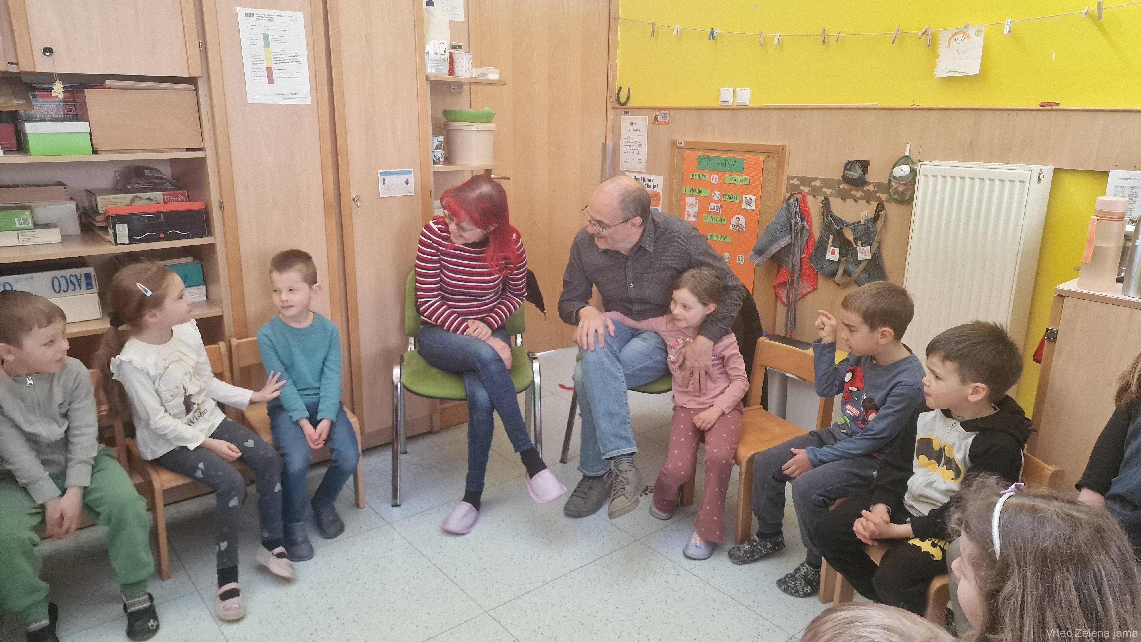 Skupina Sovice iz enote Zelena jama je v mesecu marcu – mesecu družine – doživela prav poseben obisk. V ponedeljek 30. 3. 2026 sta jih obiskala dedek in babica dveh otrok iz skupine ter z njimi delila dragocene spomine iz svojega otroštva. Pripovedovala sta o igračah, s katerimi so se igrali nekoč, ter o igrah, ki so jih poznali in so jim krajšale prosti čas. Otroci so z zanimanjem poslušali in aktivno sodelovali v pogovoru. Skupaj smo ugotovili, da se nekatere igre iz njunega otroštva igramo tudi danes, kar nas je še posebej razveselilo.