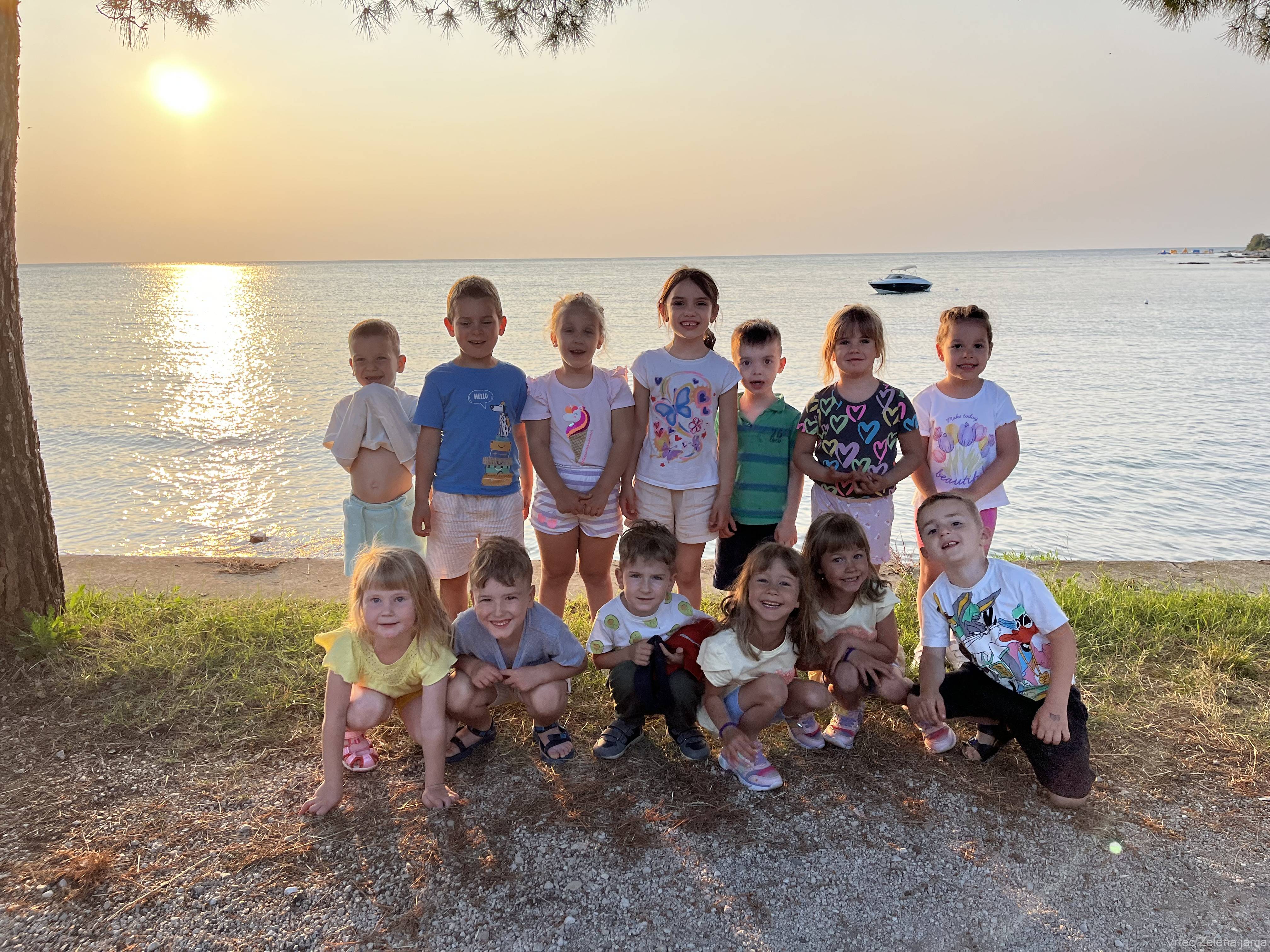 Mesec junij je bil za Storžke in Sovice vse prej kot dolgočasen! V prvih dneh so Storžki še zadnjič letos praznovali rojstne dneve junijskih slavljenk – s kronami, petjem in z nalezljivim smehom. Vrhunec meseca pa je bilo seveda letovanje v sončni Zambratiji, kjer so otroci skupaj ustvarjali čarobne spomine. Spoznavali so morski svet, uživali ob čofotanju in ob večerih opazovali sončni zahod. Otroci Sovic se letos sicer niso odpravili na morje, so pa vseeno preživeli lepe poletne dni v vrtcu na igrišču.