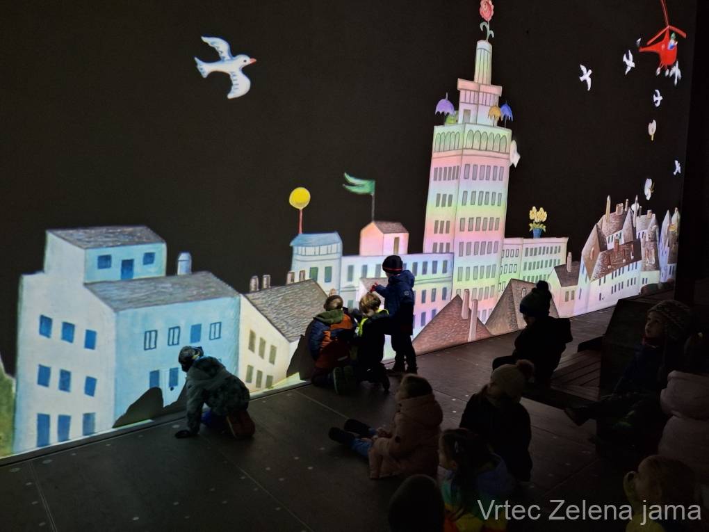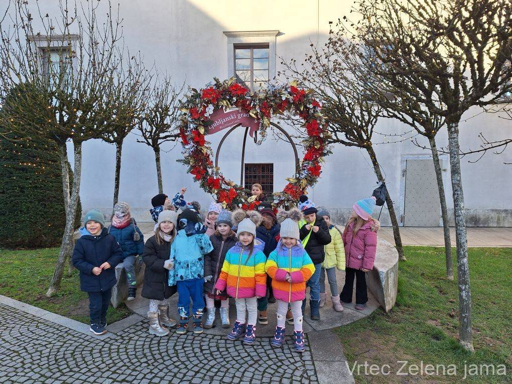V petek, 18. 12. 2025, sta se skupini Klobučki in Sončnice iz enote Zelena jama z vzpenjačo odpravili na Ljubljanski grad. Tam so si otroci ogledali razstavo Punčke iz cunj ter prostorsko projekcijo Ko ilustracije oživijo. Po ogledu so se še sprehodili po grajskem dvorišču in okolici gradu.