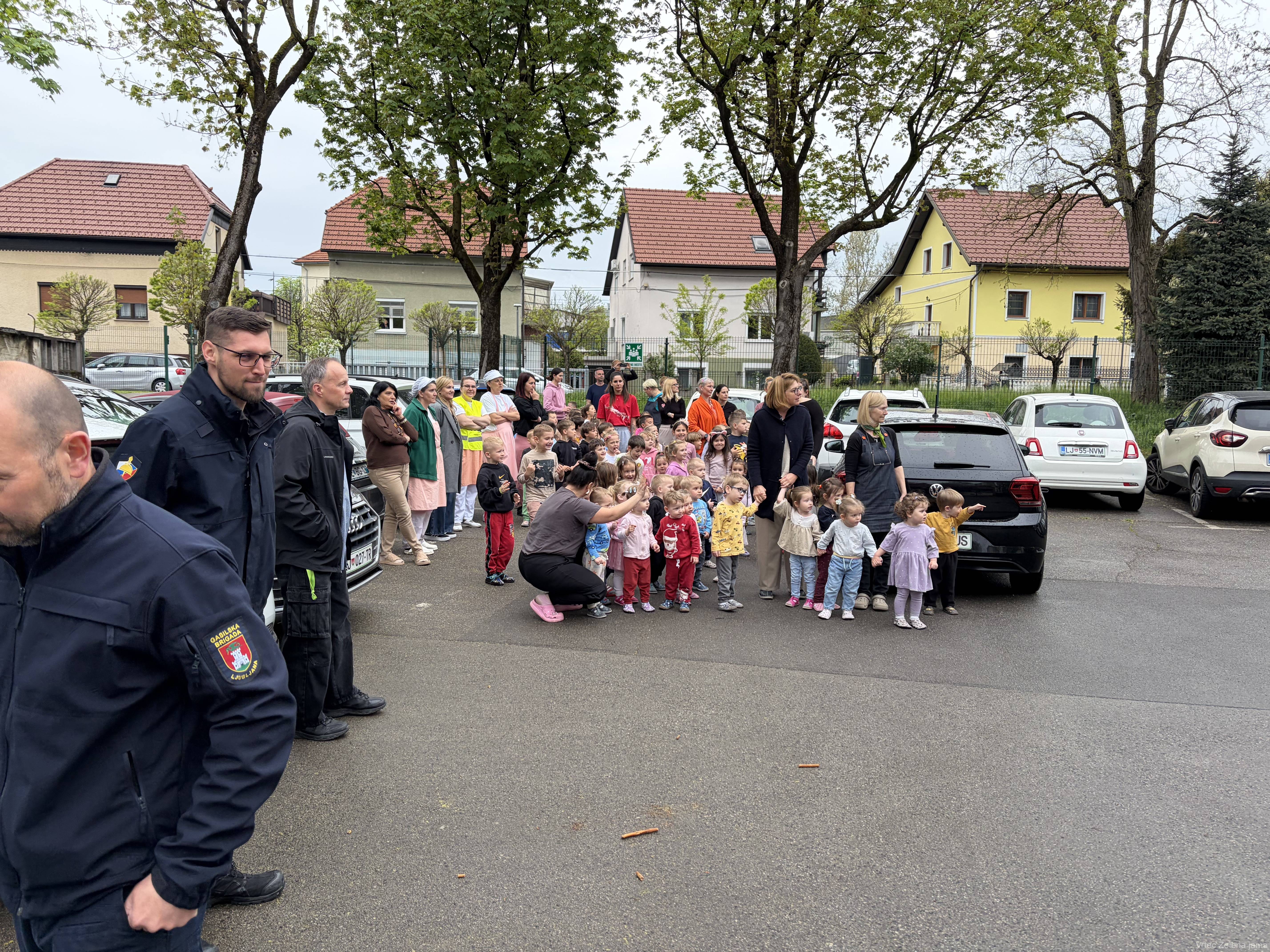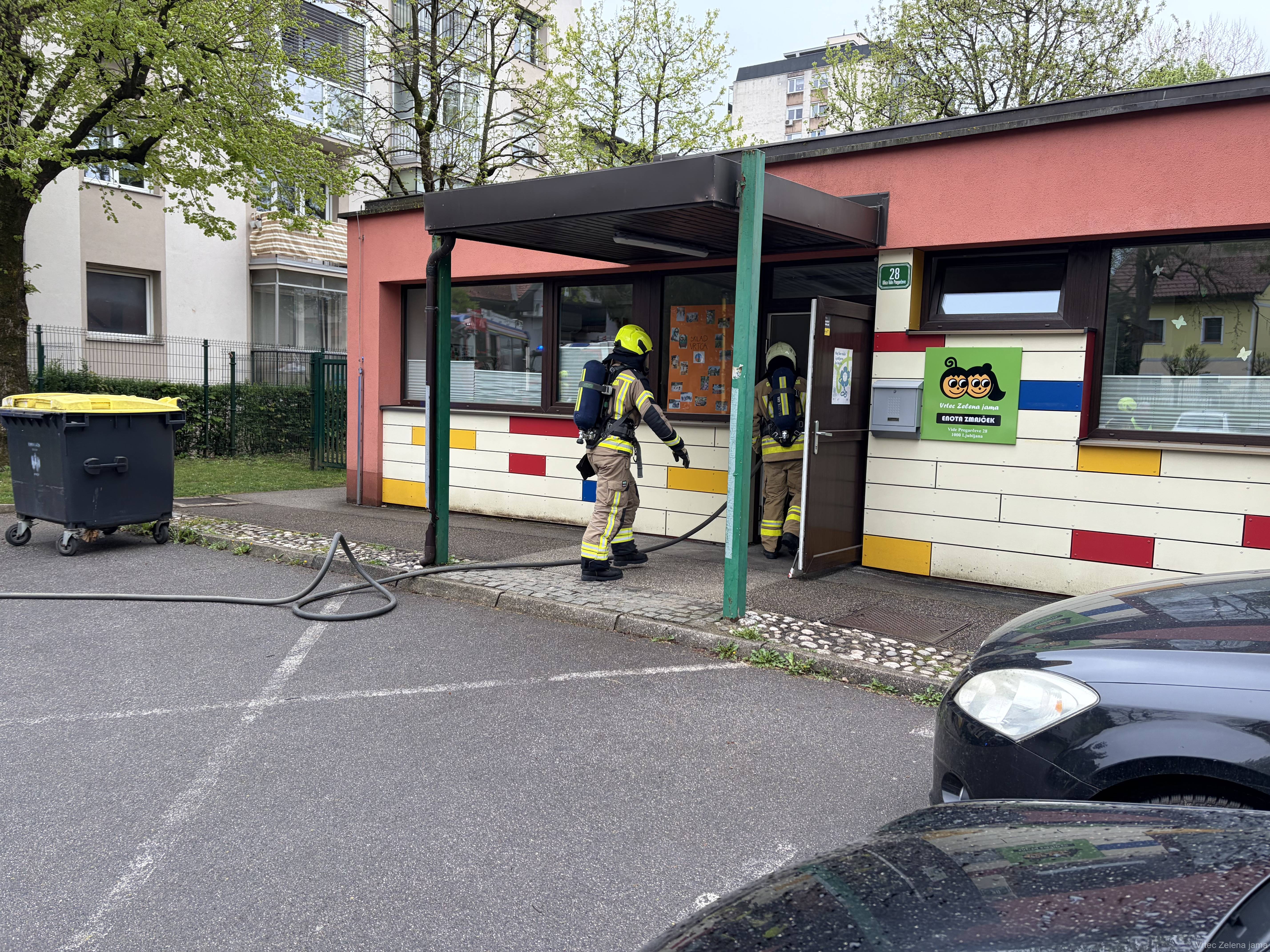 V Zmajčku je 14. 4. potekala evakuacija. Otroci so ob pisku zapustili igralnice in na parkirišču opazovali prihod gasilcev in njihovo delo.