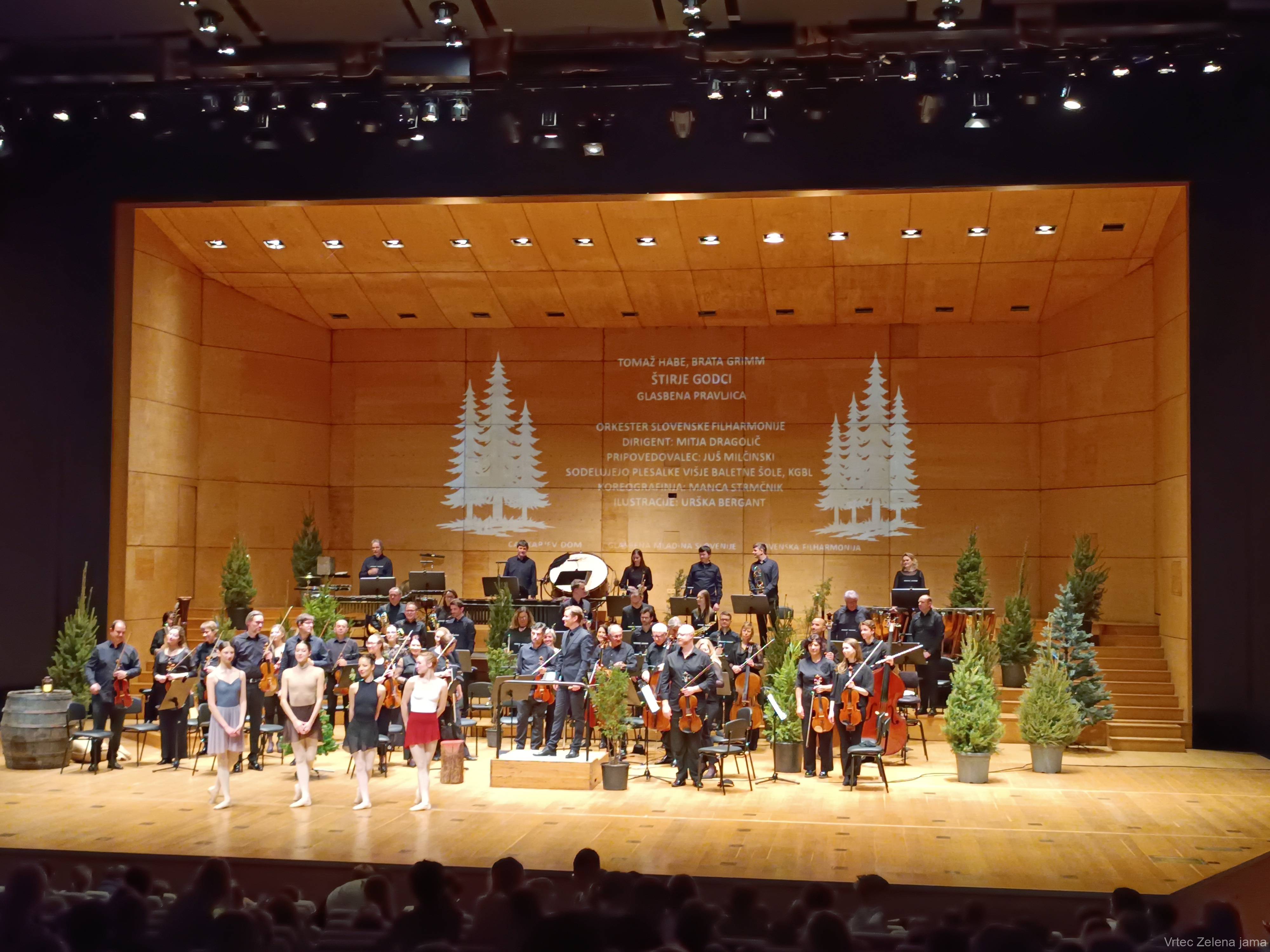V Gallusovi dvorani Cankarjevega doma so si skupine Pande, Lučke, Kamenčki in Levčki ogledali glasbeno predstavo Štirje godci.