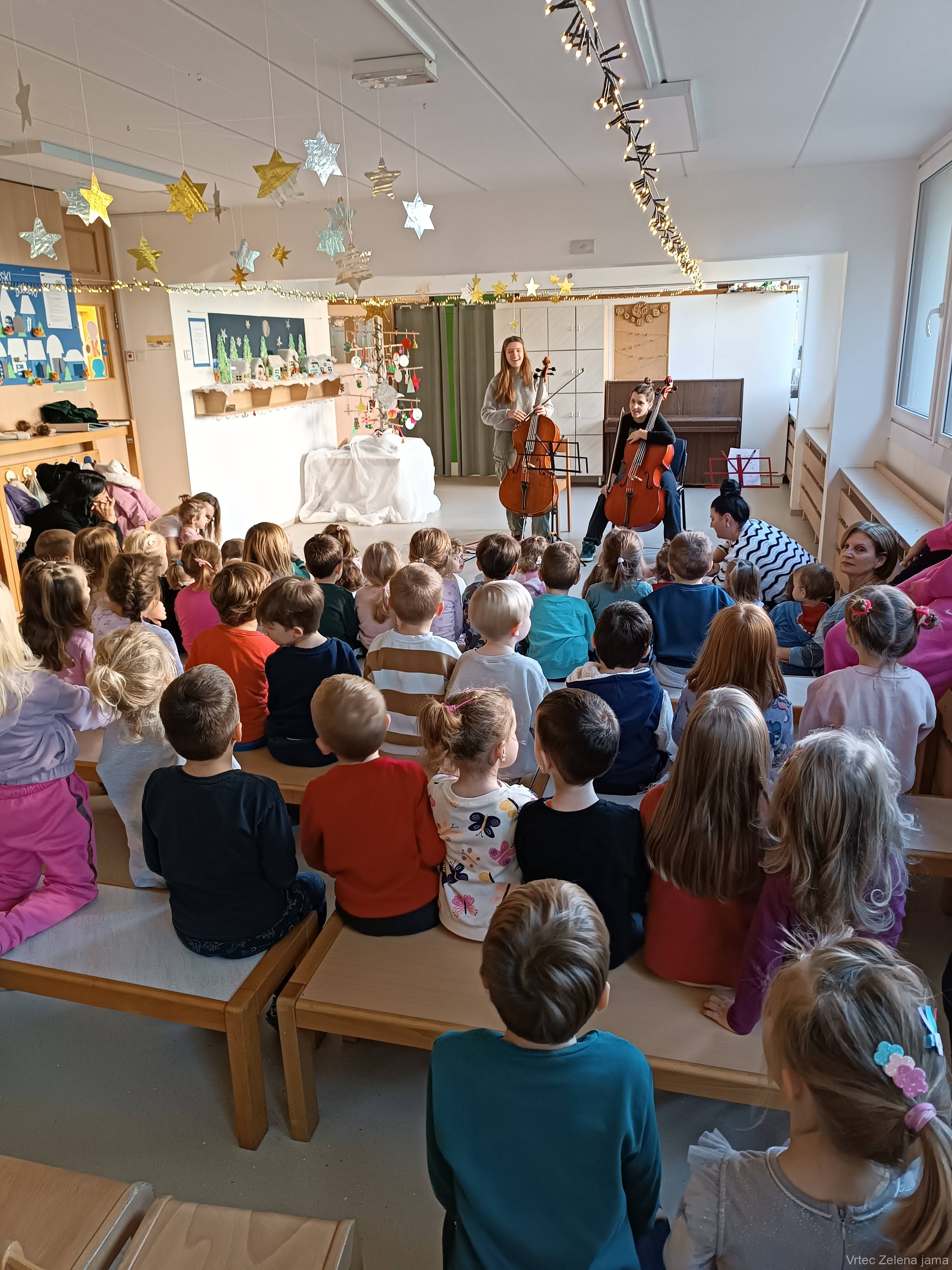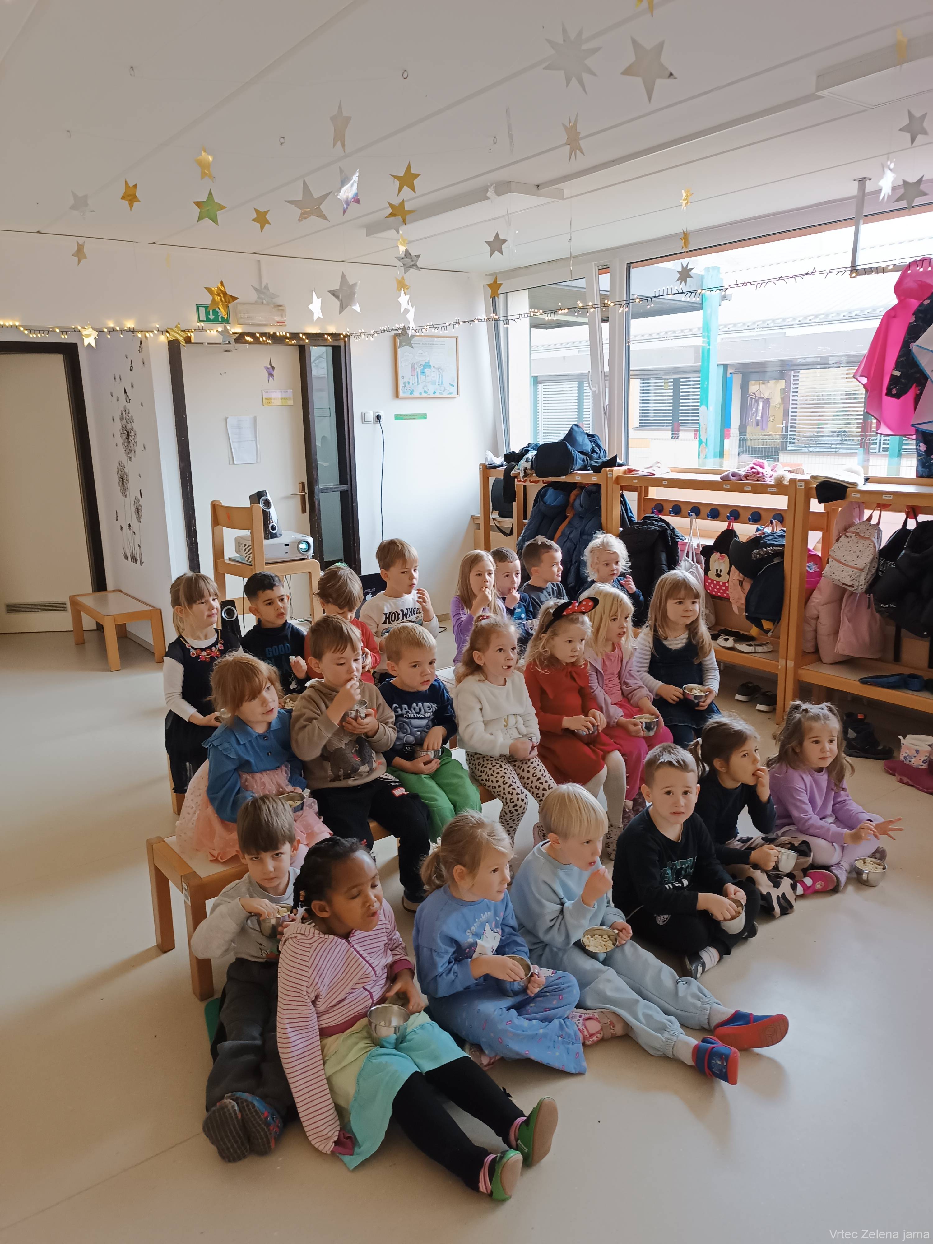 V ponedeljek, 1.12.2025, smo imeli v enoti ZMAJČEK novoletno prireditev. Otroci predšolskih skupin so pripravili glasbeno plesno predstavo Božične potičke za vse. Po nastopu smo se družili še ob novoletnih stojnicah z izdelki zaposlenih, prigrizkih in toplem čaju.