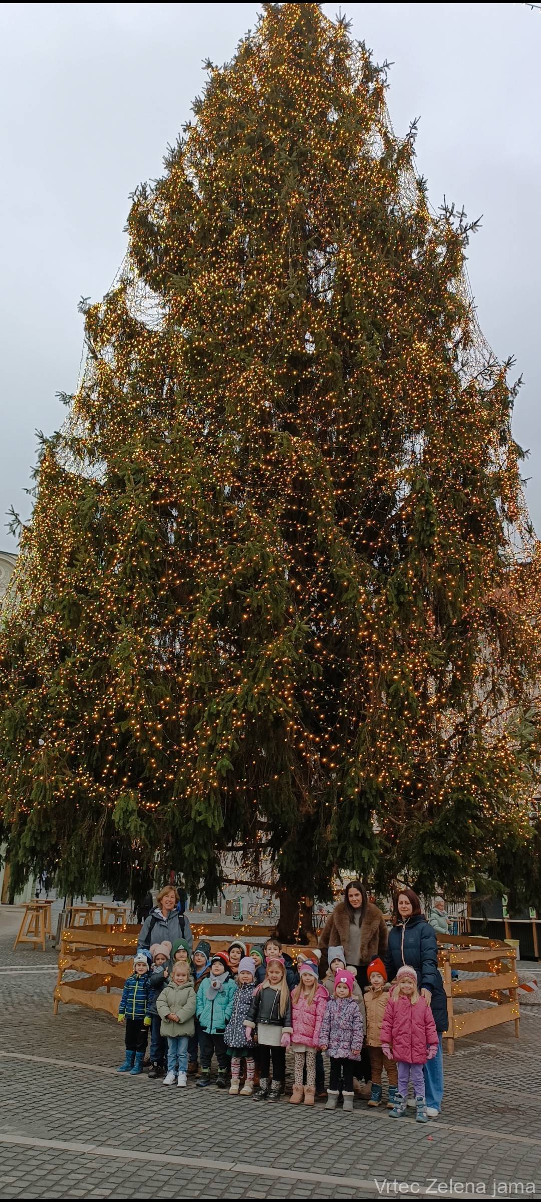 Kamenčki, Lučke, Levčki in Pande so med sprehodom občudovali lepo okrašeno mestno središče, nato pa so pot nadaljevali do Lutkovnega gledališča in si tam ogledali predstavo "Škrt, škrt, kra, čof".