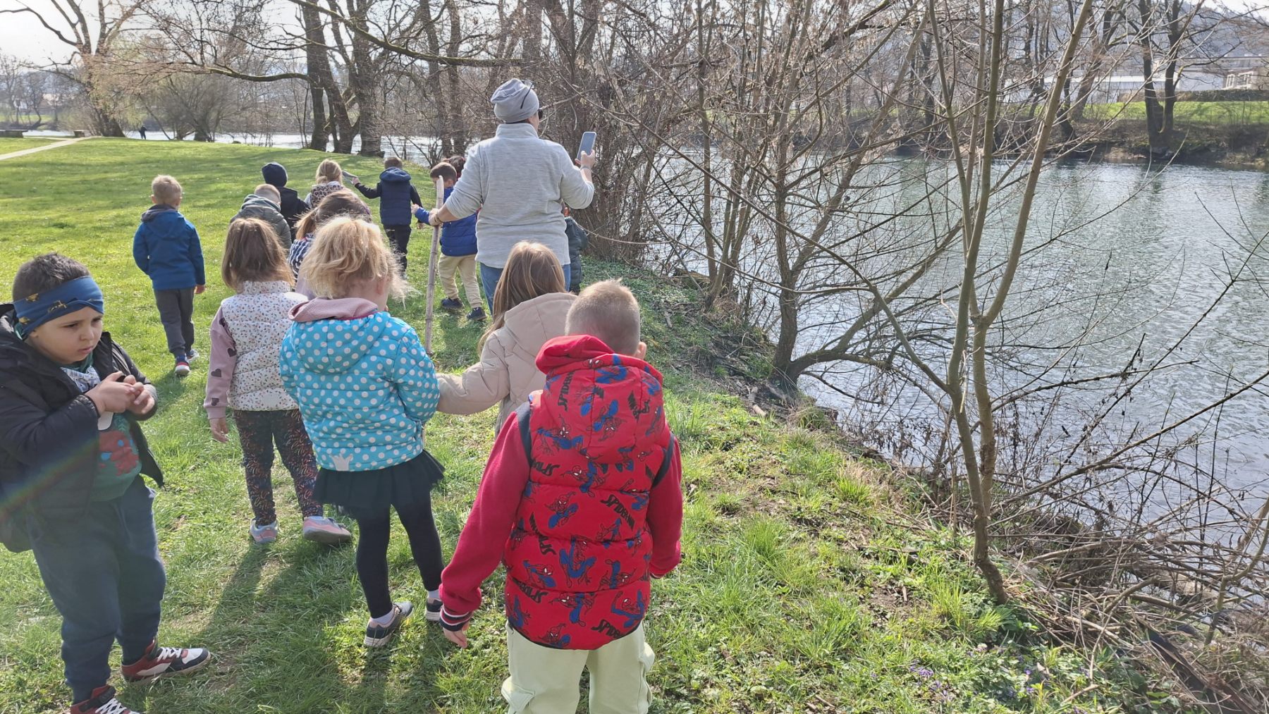 Danes smo v vrtcu obeležili gregorjevo na prav poseben način. Z otroki smo se odpravili do Ljubljanice, kjer smo po vodi spustili gregorčke, ki smo jih v preteklih dneh izdelali sami. Otroci so z velikim navdušenjem opazovali, kako njihove ladjice plujejo po reki. Nekateri so z napetostjo spremljali, ali bo njihov gregorček plul najdlje, drugi pa so ugibali, ali bo kateri morda potonil.