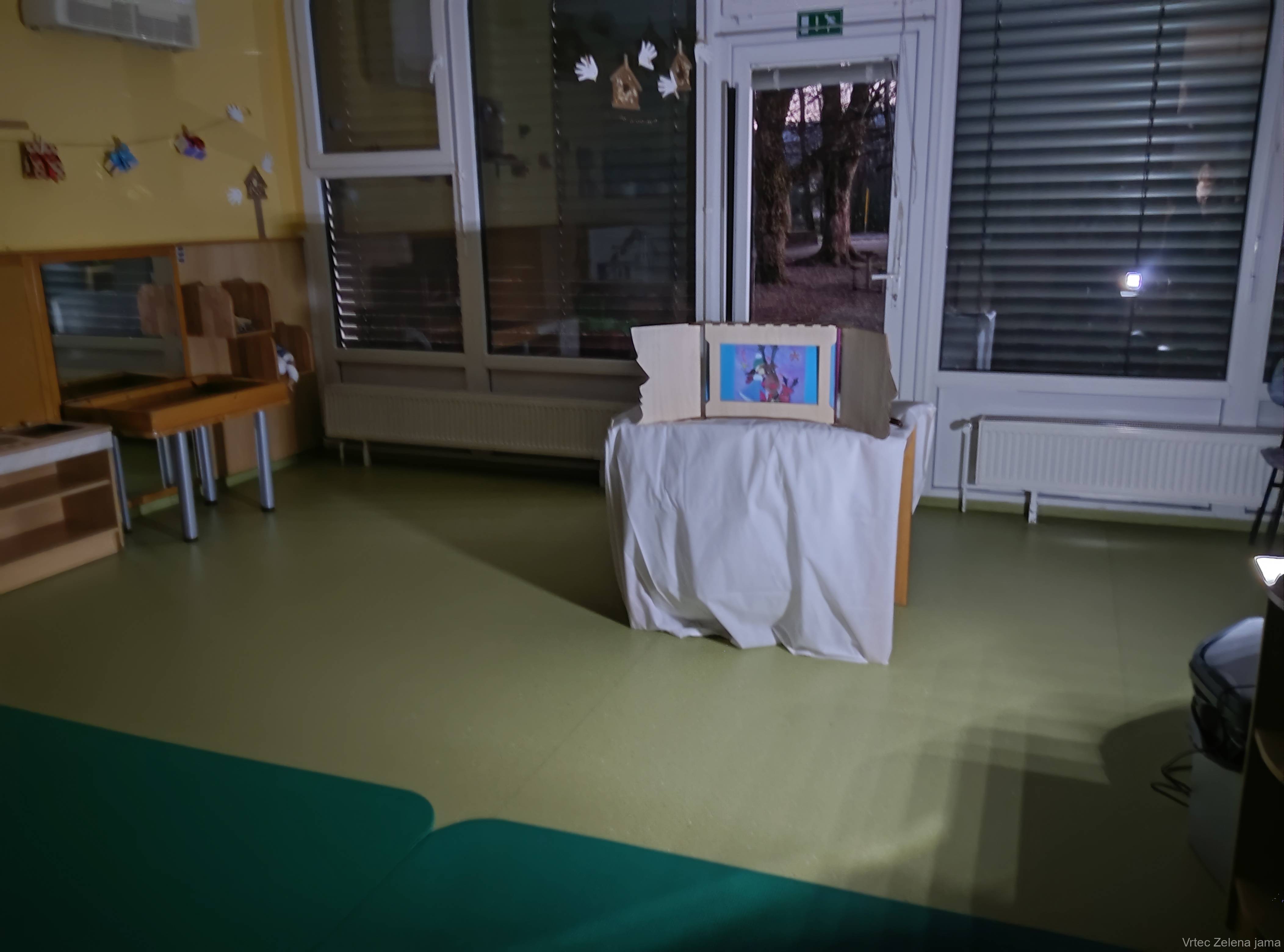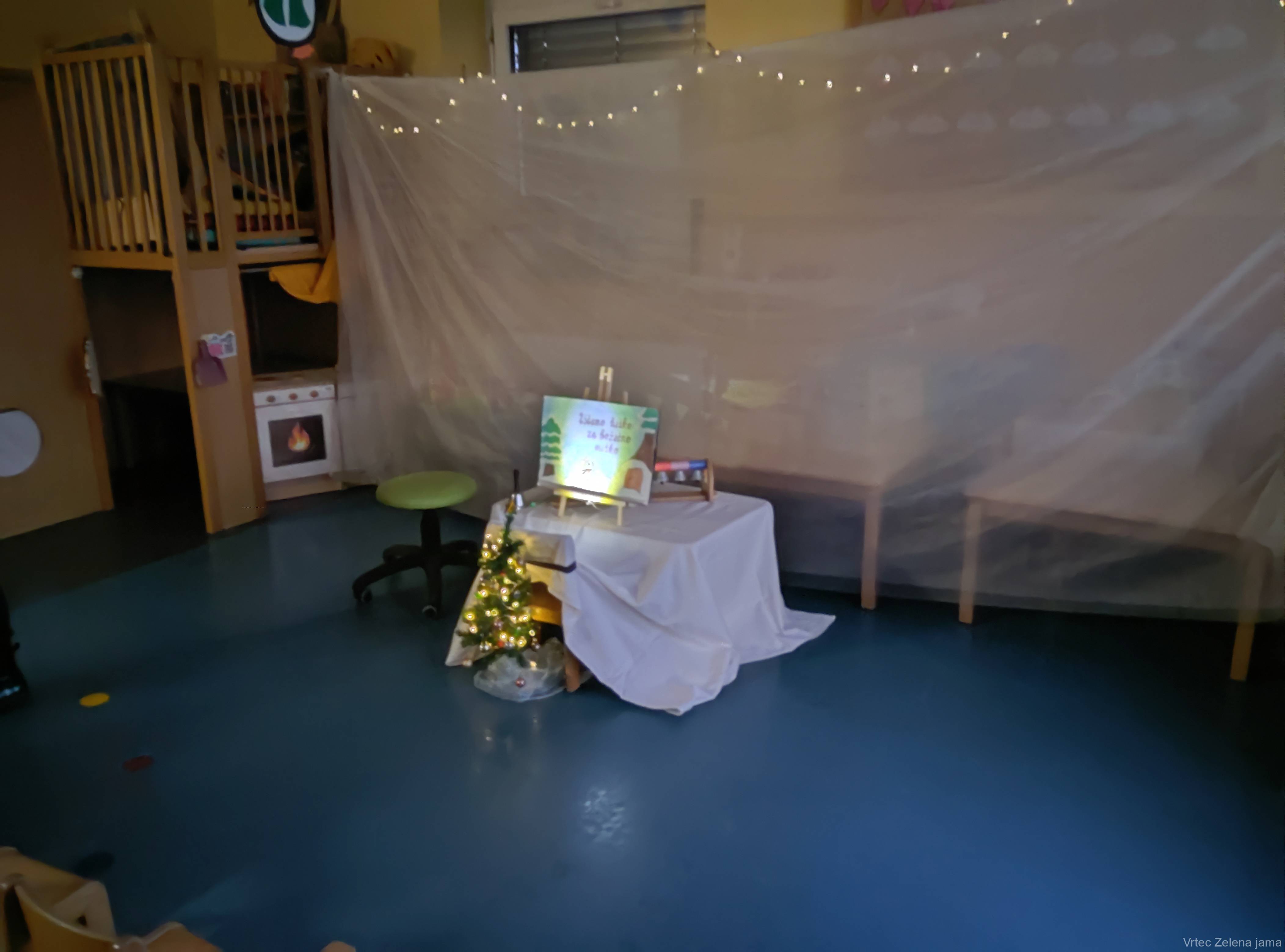 V mesecu decembru so strokovne delavke iz enote Zelena jama pripravile različne predstave, ki so si jih lahko otroci iz vseh skupin ogledali. Po vnaprej določenem razporedu so otroci spremljali igrane predstave sodelavk ter prisluhnili kamišibajem. Predstave so otrokom pričarale prijetno decembrsko vzdušje ter spodbudile njihovo domišljijo in veselje do poslušanja zgodb. Ob tej priložnosti smo povabili tudi zunanje izvajalce iz gledališča FRUFRU.