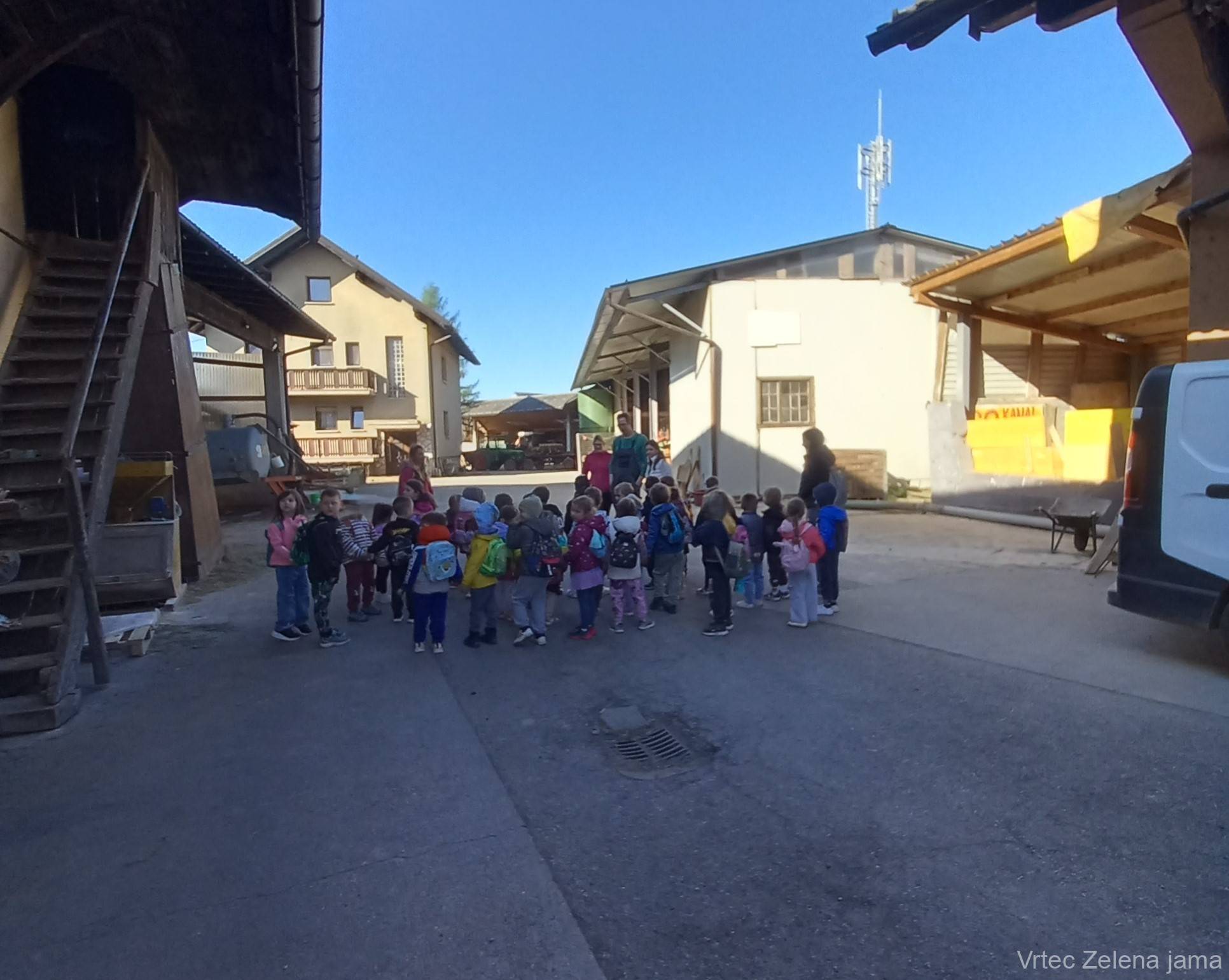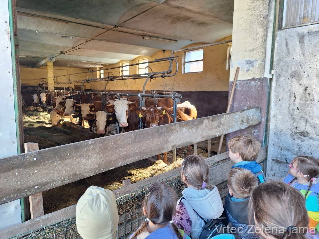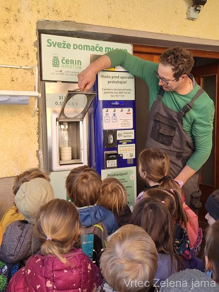 Danes, 8. 4. 2026, sta se na prelep pomladni dan skupini Klobučki in Sončnice iz enote Zelena jama v okviru Eko projekta »Mlekastično« z mestnim avtobusom odpravili na kmetijo Čerin. Tja so prispeli veseli in polni radovednosti. Otroci so si ogledali krave ter spoznali delo kmetov in pomen njihovega vsakdanjega truda. Na travniku je prijetno sijalo sonce, uživali so v naravi in nežno božali kokoške. Za konec jih je čakalo še prav posebno presenečenje – obisk mlekomata, kjer so kupili sveže, zdravo mleko, kar jih je še dodatno razveselilo.