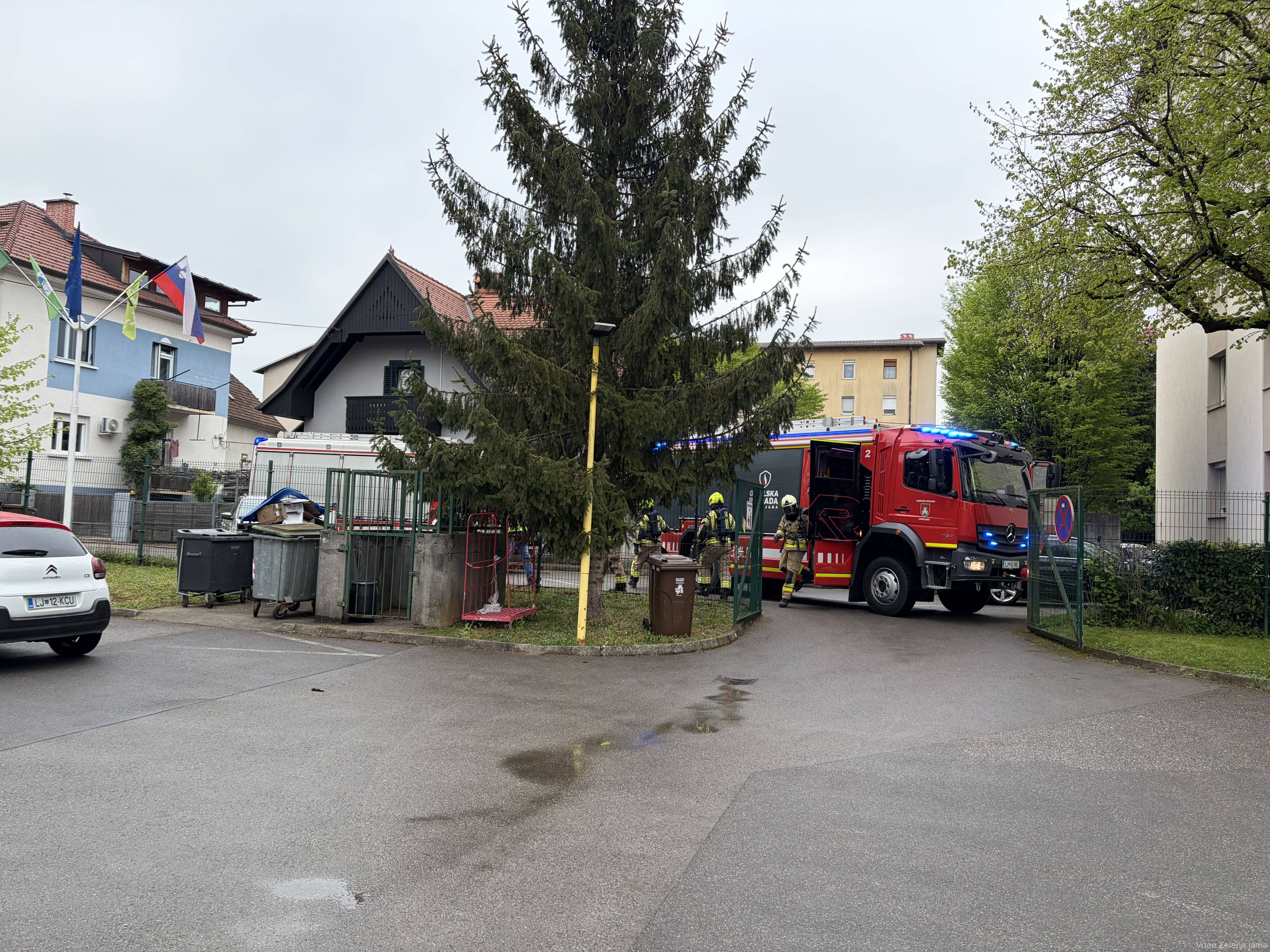 V Zmajčku je 14. 4. potekala evakuacija. Otroci so ob pisku zapustili igralnice in na parkirišču opazovali prihod gasilcev in njihovo delo.